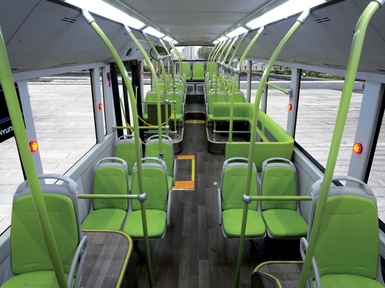더불어 운전자 편의성 개선을 위해 신규 개발된 디지털 클러스터와 단순화된 변속 버튼을 적용했으며 승객 편의성 향상을 위해 실내 후방으로 이동이 편리하도록 2단 계단 구조를 적용하고 27석의 동급 최대 승객 좌석을 배치한 것이 특징이다.